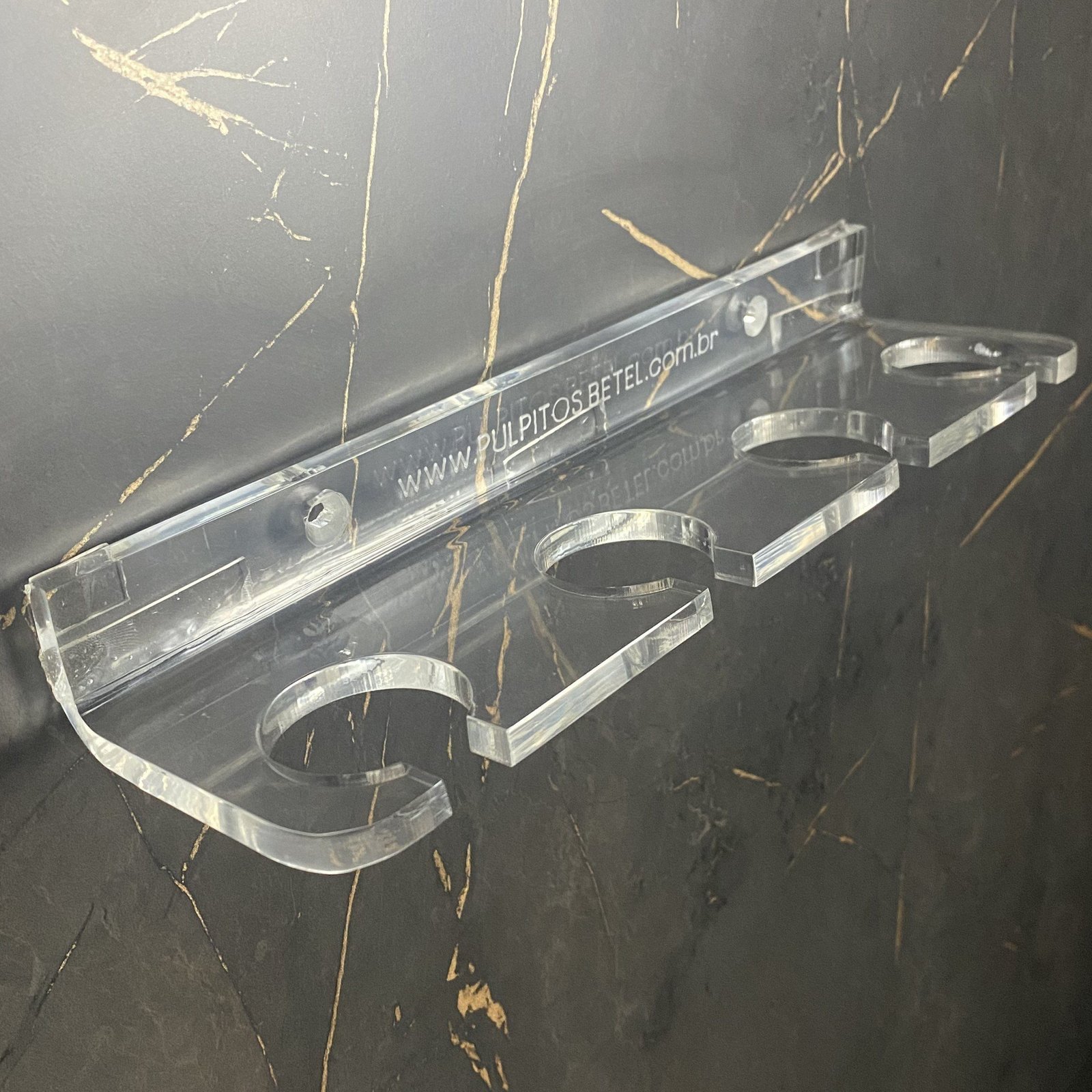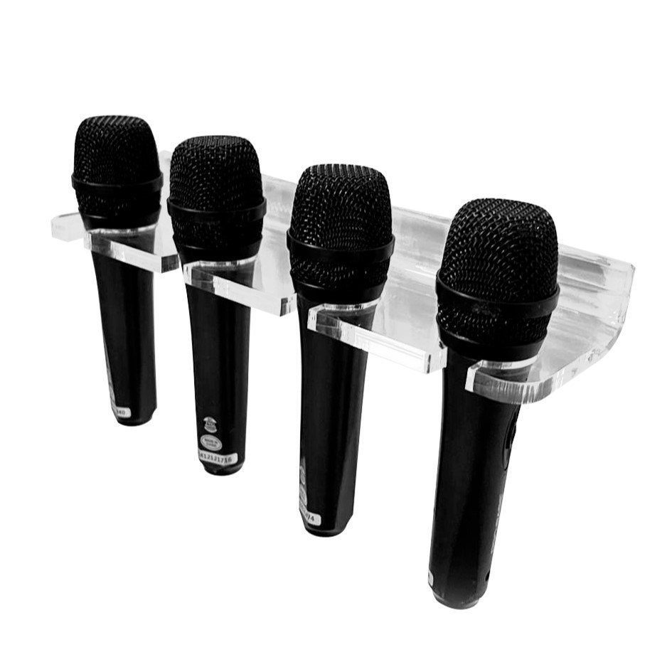 Suporte para microfone e microfone sem fios com 4 unidades, permite descanso de 4 microfone. Em acrílico virgem 8mm resistente.